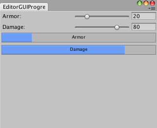 public class EditorGUIProgressBar : EditorWindow { float armor = 20; float damage = 80;