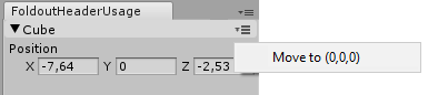 // Create a foldable header menu that hides or shows the selected Transform position. // If you have not selected a Transform, the Foldout item stays folded until // you select a Transform.