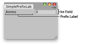 public void OnGUI() { EditorGUILayout.BeginHorizontal(); EditorGUILayout.PrefixLabel("Ammo"); ammo = EditorGUILayout.IntField(ammo); EditorGUILayout.EndHorizontal(); } }