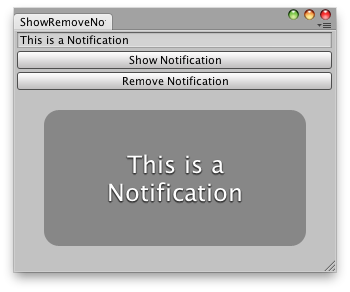 if (GUILayout.Button("Show Notification")) { this.ShowNotification(new GUIContent(notification)); }
