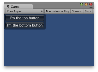 GUILayout.Button("I'm the top button"); GUILayout.Button("I'm the bottom button");