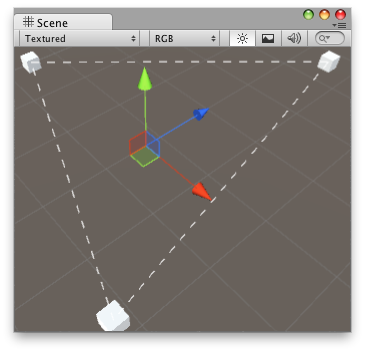 // Draw lines to the connected game objects that a script has. // If the target object doesn't have any game objects attached // then it draws a line from the object to (0, 0, 0).
